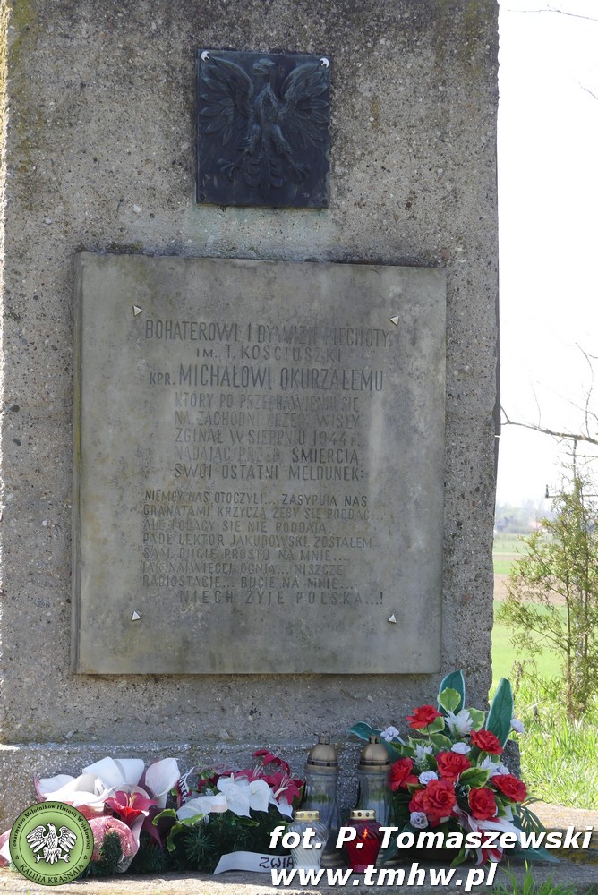Michał Okurzały - ur. 1919 na Podolu. W 1940r. wcielony do Armii Czerwonej; po ataku Niemiec na ZSRR - ze względu na polskie pochodzenie - skierowany do batalionu pracy. W 1943 r. wstąpił do Wojska Polskiego formowanego w Sielcach nad Oką. Uczestnik Bitwy pod Lenino i walk o przyczółki pod Dęblinem i Puławami. Poległ w okolicach wsi Głusiec 02.08.1944 r.