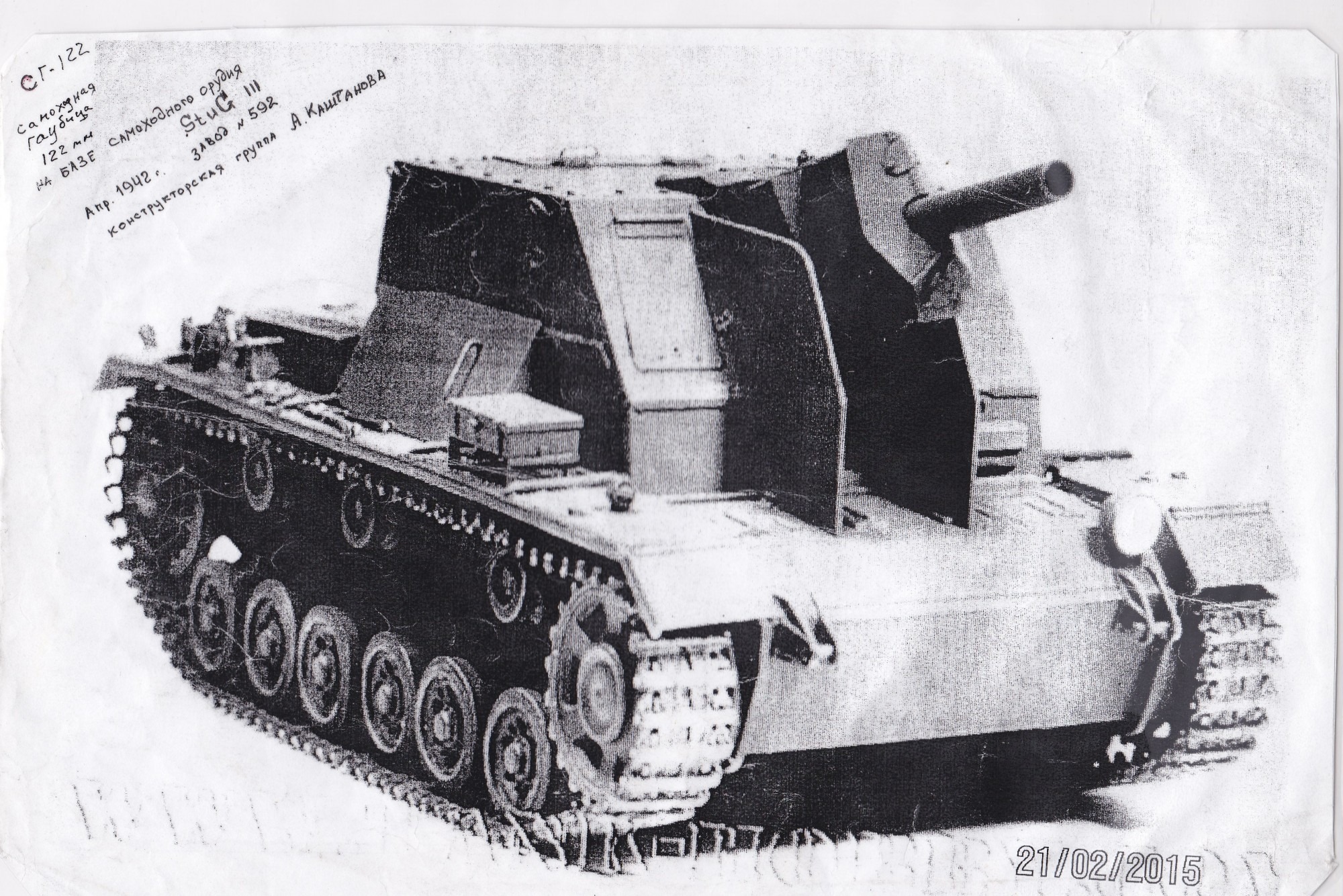Na podstawie testów poligonowych, oraz zgodnie z zaleceniami komisji nadzorującej powyższe, Przystąpiono do budowy poprawionych kolejnych wozów bojowych. Na podstawie tej samej dyrektywy przystąpiono również do opracowywania planów przezbrojenia w haubicę M-30 zdobycznych czołgów PzKpfw. III. Decyzja o przebudowaniu niemieckich „trójek” została podyktowana faktem iż w ręce Armii Czerwonej wpadały duże ilości czołgów tego typu, ponadto otrzymał on od specjalistów którzy zajmowali się oceną zdobycznego niemieckiego sprzętu bardzo dobre oceny. W opracowywanych sprawozdaniach wskazywali oni na wysoką niezawodność jednostki napędowej, bardzo dobrą skrzynię biegów oraz wysoką manewrowość pojazdu. Niebagatelne znaczenia miał również fakt iż niemiecki czołg osiągał znaczną szybkość, która przewyższała nawet prędkości osiągane przez słynny czołg T-34. Nie dziwi więc fakt, nakazania zakładom w Mytiszczu opracowania projektu przebudowy niemieckiego czołgu. W ciągu kilku następnych miesięcy 1942 r. dokonano wszystkich wymaganych poprawek i fabrykę macierzystą opuściło pierwsze 10 zmodernizowanych dział samobieżnych SG-122 z czego jedno było już konwersją opartą na podwoziu niemieckiego czołgu.