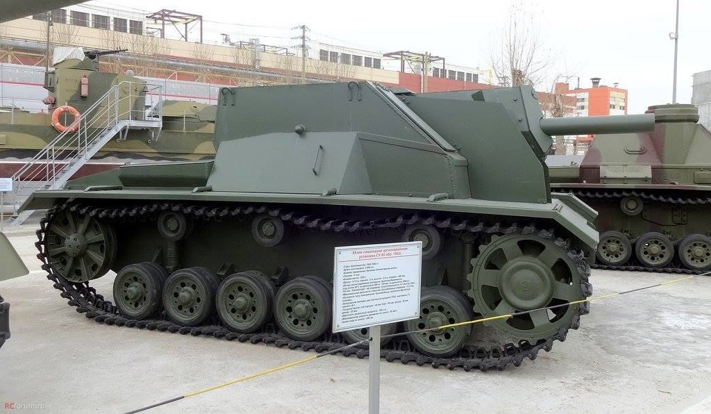 W międzyczasie pojawił się pomysł aby dokonać konwersji niemieckich dział samobieżnych Sturmgeschütz III. polegającej na demontażu niemieckiego działa i uzbrojenia wozu w armatę rodzimej produkcji. Takie rozwiązanie techniczne było spowodowane faktem iż Armia Czerwona nie posiadała w tym okresie żadnych nowoczesnych dział szturmowych a w wyniku doświadczeń wyniesionych z frontu uzmysłowiono sobie jak ważną rolę na polu walki takie pojazdy spełniają. Jako, że wdrożenie do produkcji własnych modeli tego typu wozów wymagało czasu, to rozwiązanie problemu poprzez przebudowę niemieckich pojazdów wydawało się jak najbardziej logiczne.